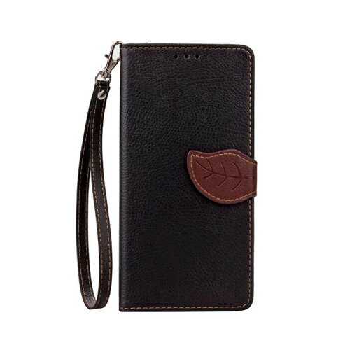 Galaxy S9+ Plus 手帳型ケース カバー リーフモチーフ マグネットボタン レザー 合皮 マグネット開閉 カード収納可能 ハンドストラップ付き スタンド機能付き docomo ドコモ au SC-03K SCV39 ツートンカラー ブラック×ブラウン