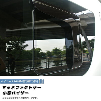 ハイエース200系小窓バイザー 【マッドファクトリーオリジナルプロダクト】 雨の日でもサイドウィンドウを開けれるようにします! 【適合車種】ハイエース200系4 - 5型用(※1型 - 3型は取付不可) ※単品販売も行っております。